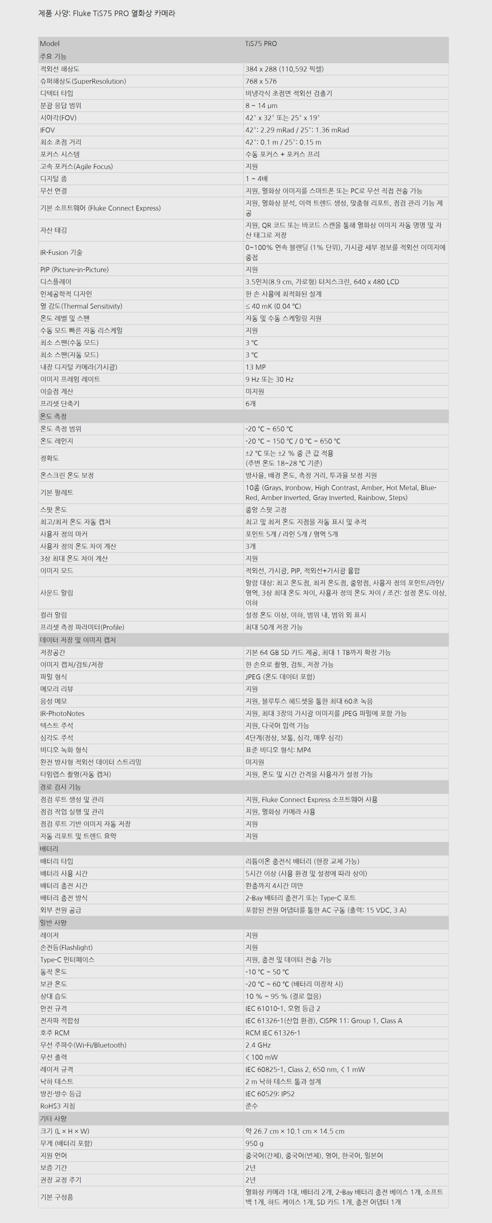 - 열화상카메라 (TiS75 PRO)