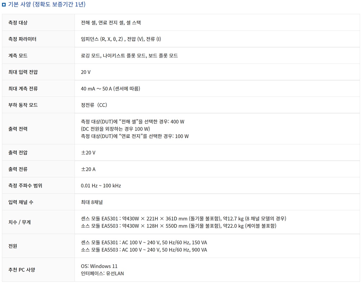 - 전기화학 임피던스 분광법(EIS)을 이용한 임피던스 측정은 수전해 셀, 연료전지, 공전해질 연구에서 점점 더 중요해지고 있습니다. 기존의 I-V 측정으로는 셀의 성능 자체를 평가하는 것은 가능하지만, 성능 변화의 원인을 예측하는 것은 어려웠습니다.