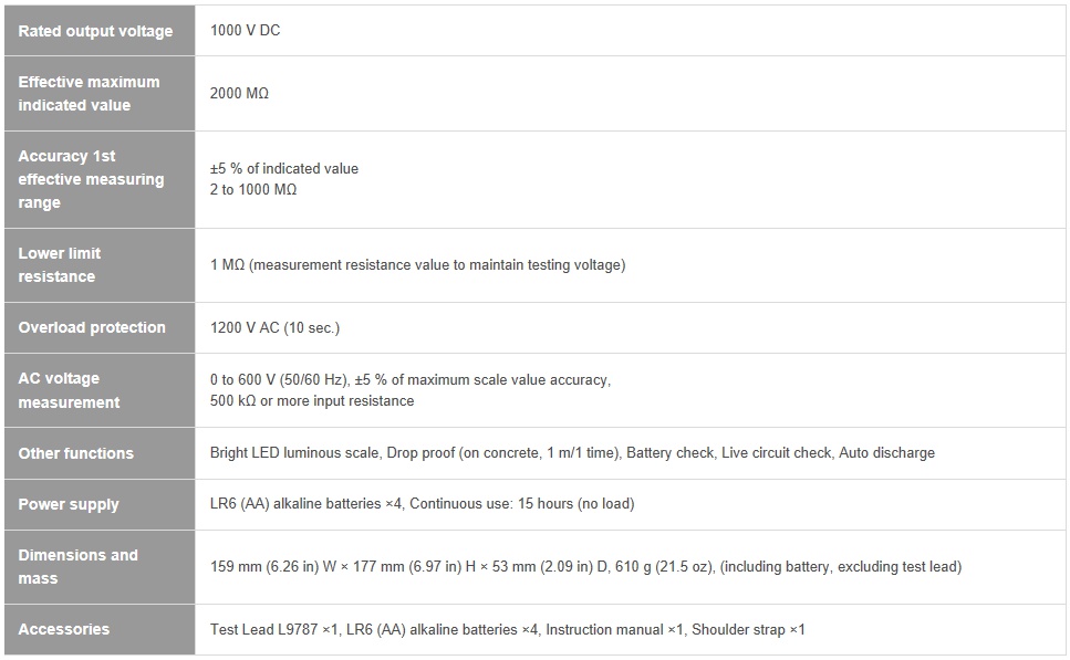 - Single range testing voltage of 1000 V