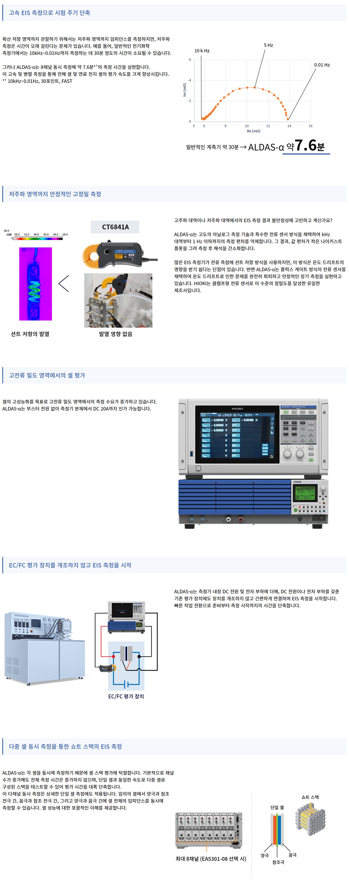 ALDAS-α는 기존 EIS 측정보다 빠른 측정 속도와 고정밀 전류 센서를 활용한 EIS 측정을 통해 셀 연구 및 평가를 가속화합니다.