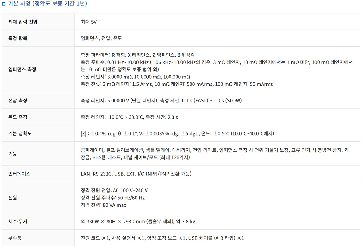 *1: EIS(Electrochemical Impedance Spectroscopy), 전기화학 임피던스 분광법은 작은 AC 신호를 사용하여 넓은 주파수 범위에 걸친 배터리의 임피던스를 측정하는 시험입니다. 이를 통해 배터리 내부의 저항이나 반응성 등에 대한 상세한 통찰력을 얻을 수 있으며, 배터리의 동작 및 성능을 이해하는 데 있어 연구 개발과 품질 관리에 유용합니다.